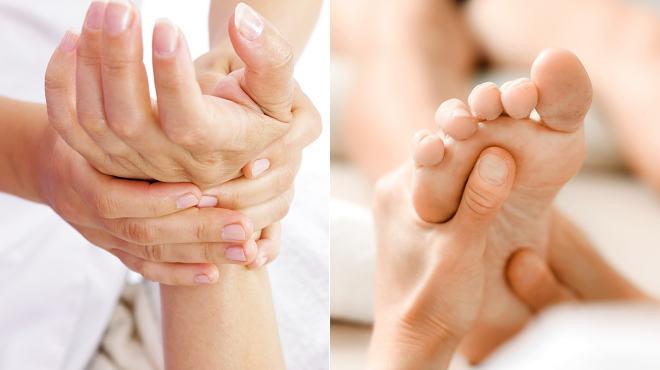 Parce que pieds et mains n’agissent pas de la même façon, et leur combinaison offre un résultat plus global et plus durable :